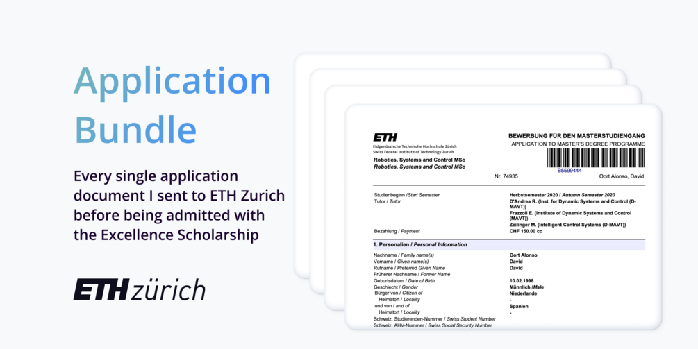 This includes a .zip file with every single application document I submitted during my application to the ETH Zurich Master and Excellence Scholarship Program. For each document, you will find a PDF file and LaTeX project (where applicable).